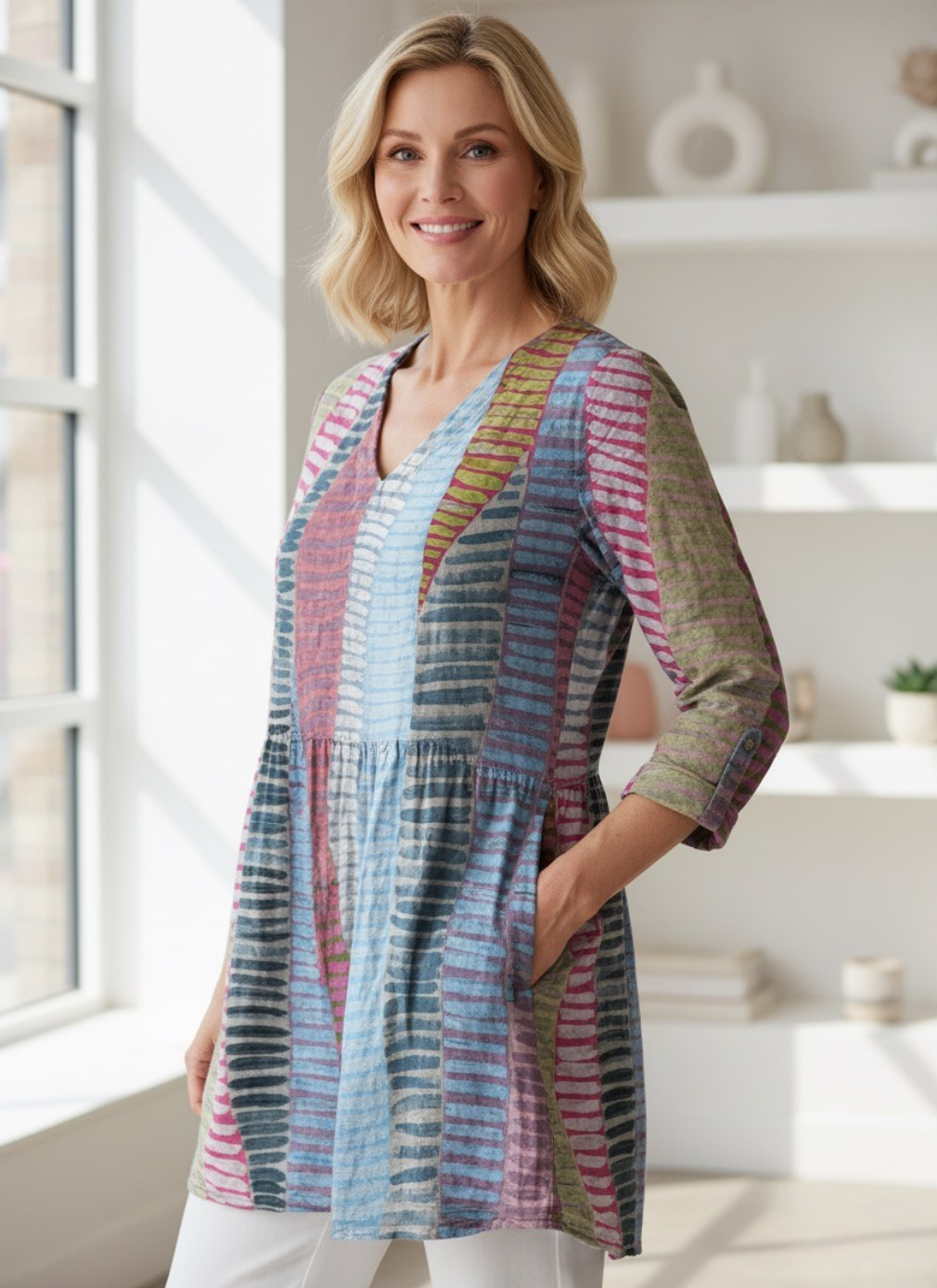 A timeless piece that blends comfort and sophistication. Designed with a relaxed long fit, soft linen feel, and subtle details, it flatters every silhouette with effortless grace. Easy to style with jeans, leggings, or layered under a jacket — perfect for days when you want to feel both comfortable and refined.