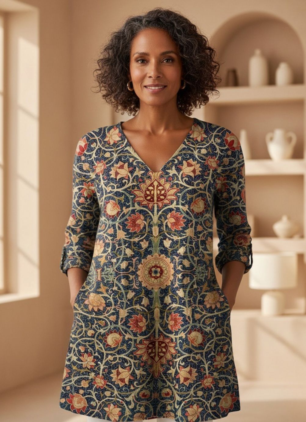 A timeless piece that blends comfort and sophistication. Designed with a relaxed long fit, soft linen feel, and subtle details, it flatters every silhouette with effortless grace. Easy to style with jeans, leggings, or layered under a jacket — perfect for days when you want to feel both comfortable and refined.