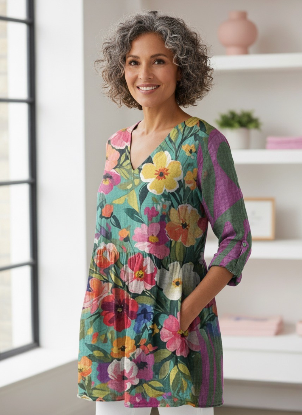 • Relaxed long cut that drapes beautifully on every body type