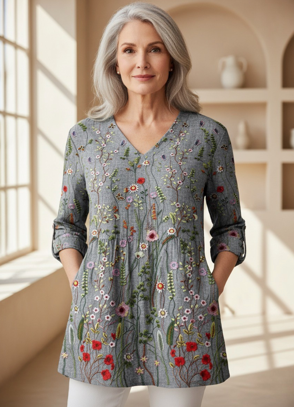 • Relaxed long cut that drapes beautifully on every body type