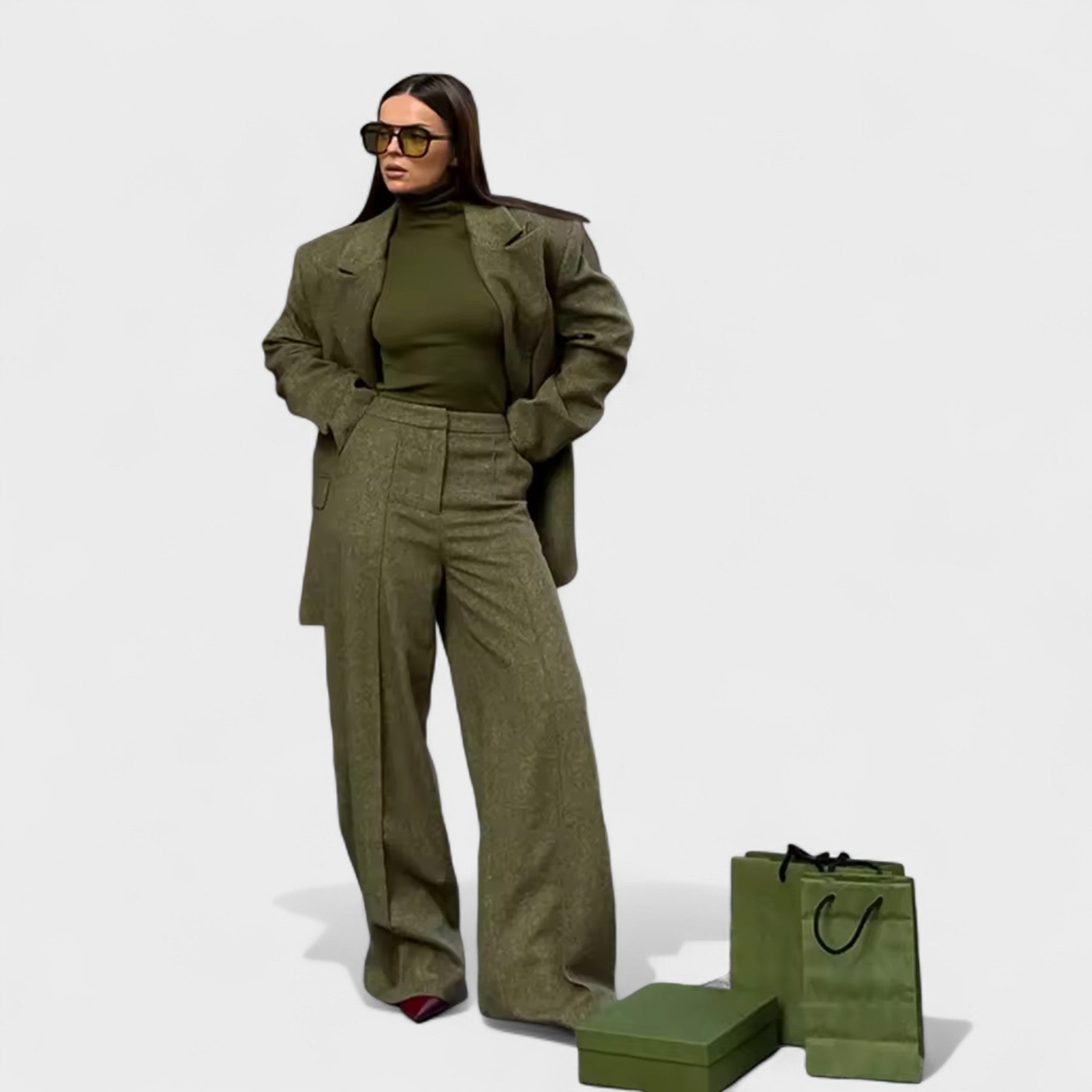 This set redefines the concept of contemporary elegance. With a structured-cut blazer and high-waisted wide-leg pants, it offers a striking and sophisticated silhouette, perfect for those who want to assert their presence with confidence.