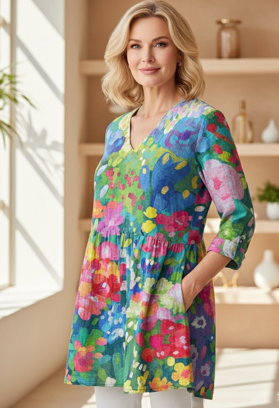 A timeless piece that blends comfort and sophistication. Designed with a relaxed long fit, soft linen feel, and subtle details, it flatters every silhouette with effortless grace. Easy to style with jeans, leggings, or layered under a jacket — perfect for days when you want to feel both comfortable and refined.